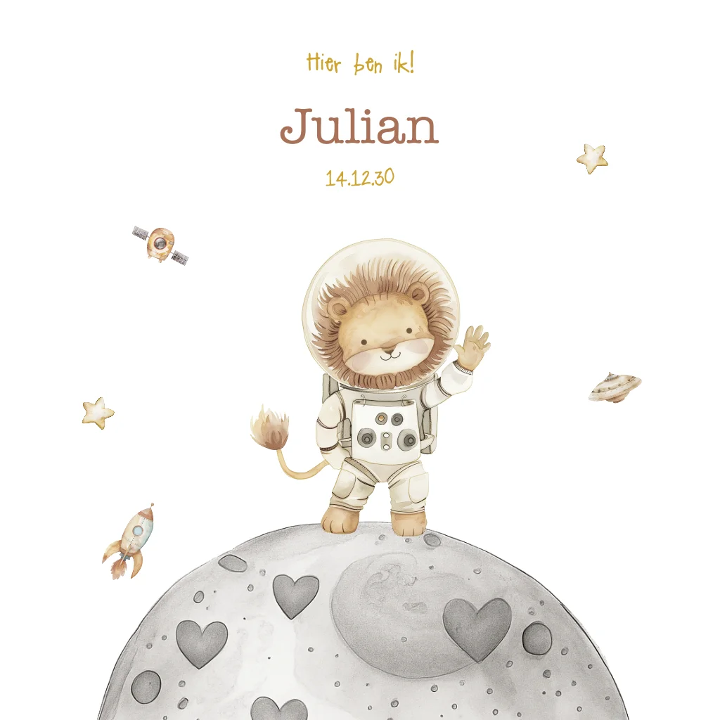 Geboortekaartje jongen met een leeuwtje in de ruimte