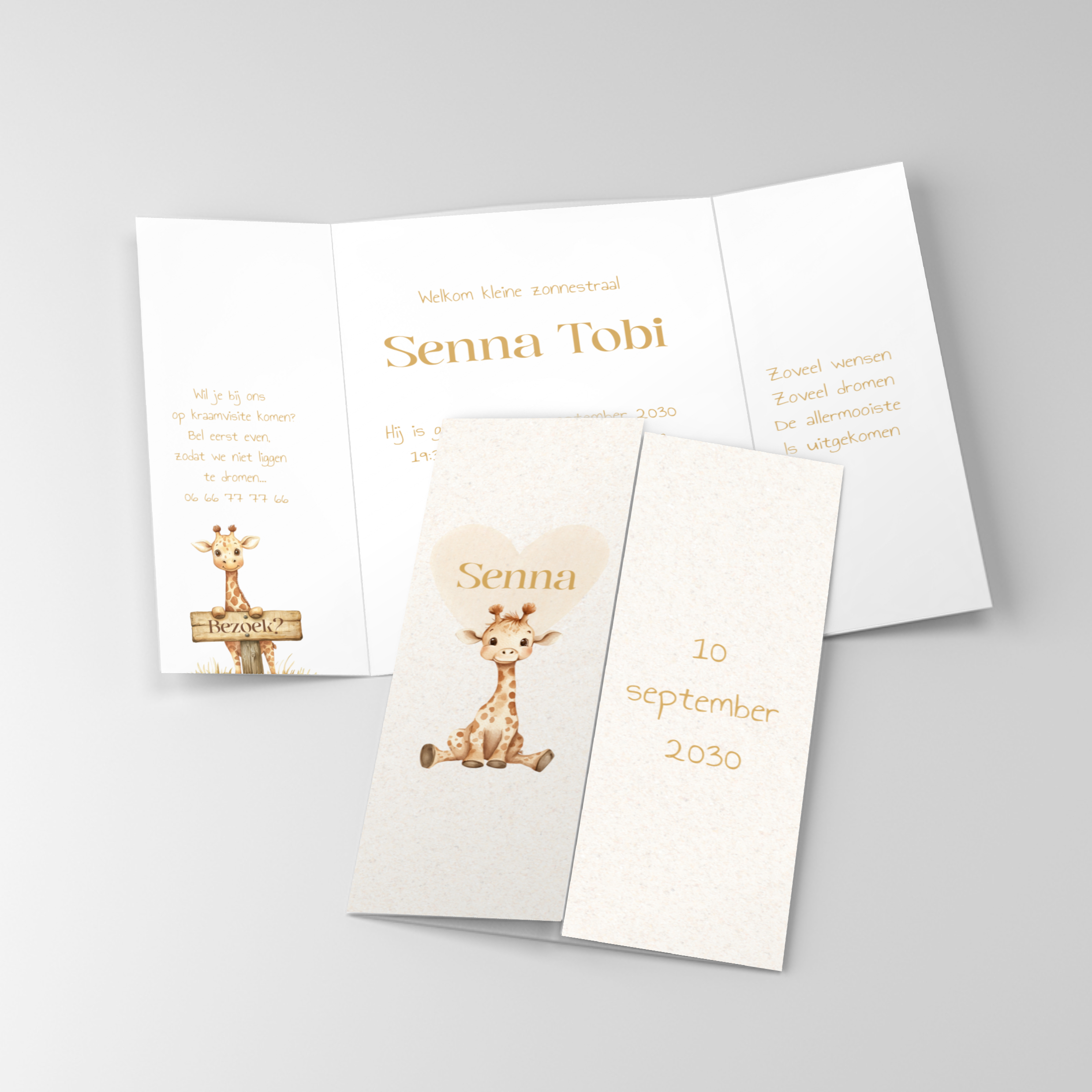 Geboortekaartje jongen of meisje met een girafje en luik vouw
