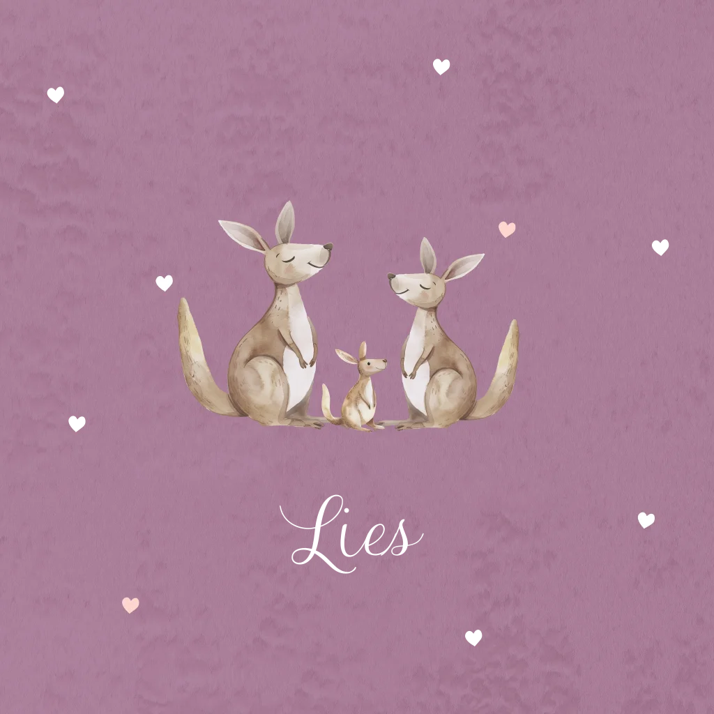 Geboortekaartje meisje met kangoeroes, hartjes en velvet look