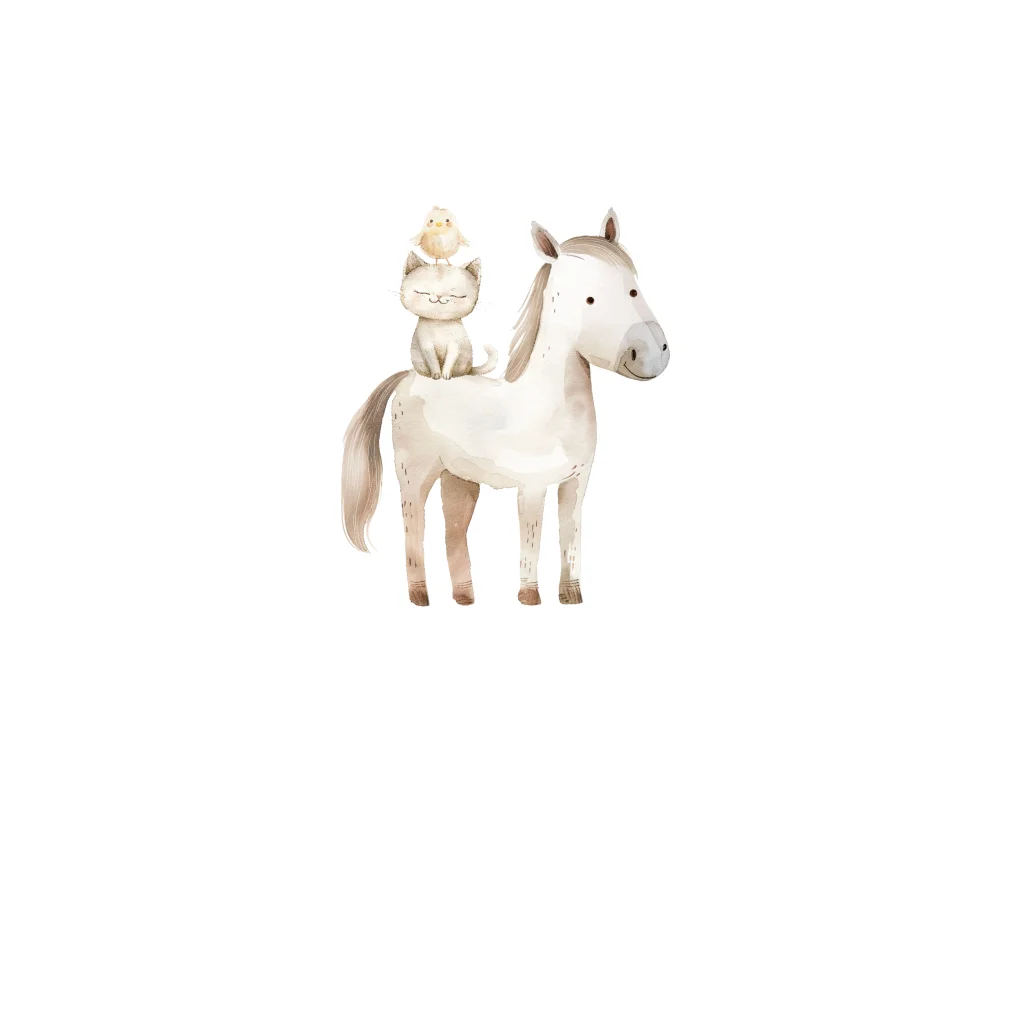 Geboortekaartje voor een meisje met lieve getekende dieren. Een paard met een kat en een kuiken op zijn rug. (30254)