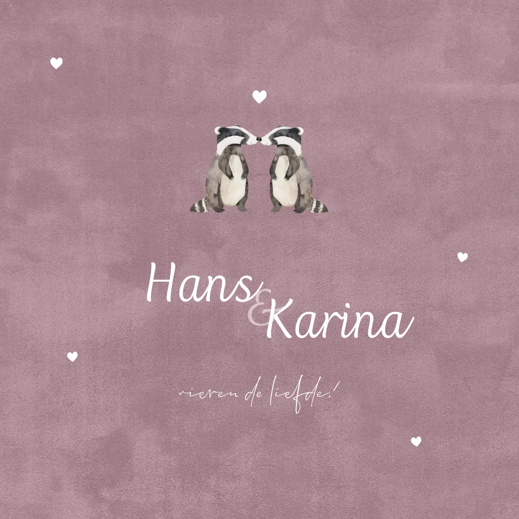 Uitnodiging jubileum 10 jaar getrouwd met paarse velvet look achtergrond en wasbeertjes. (30269)