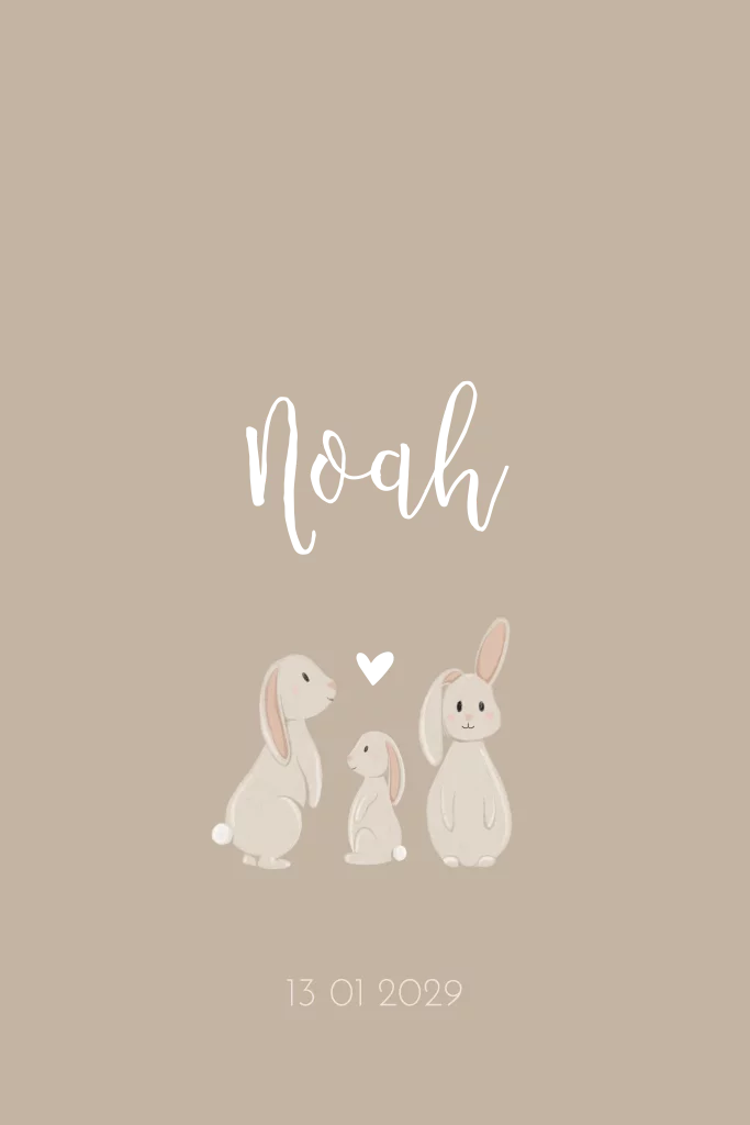 Geboortekaartje Konijn voor een jongen of meisjes met getekende konijnen op een warme achtergrondkleur. (24345)