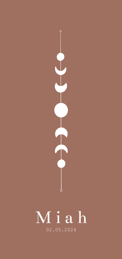 Maanstanden in goudfolie hip geboortekaartje meisje. (22943)