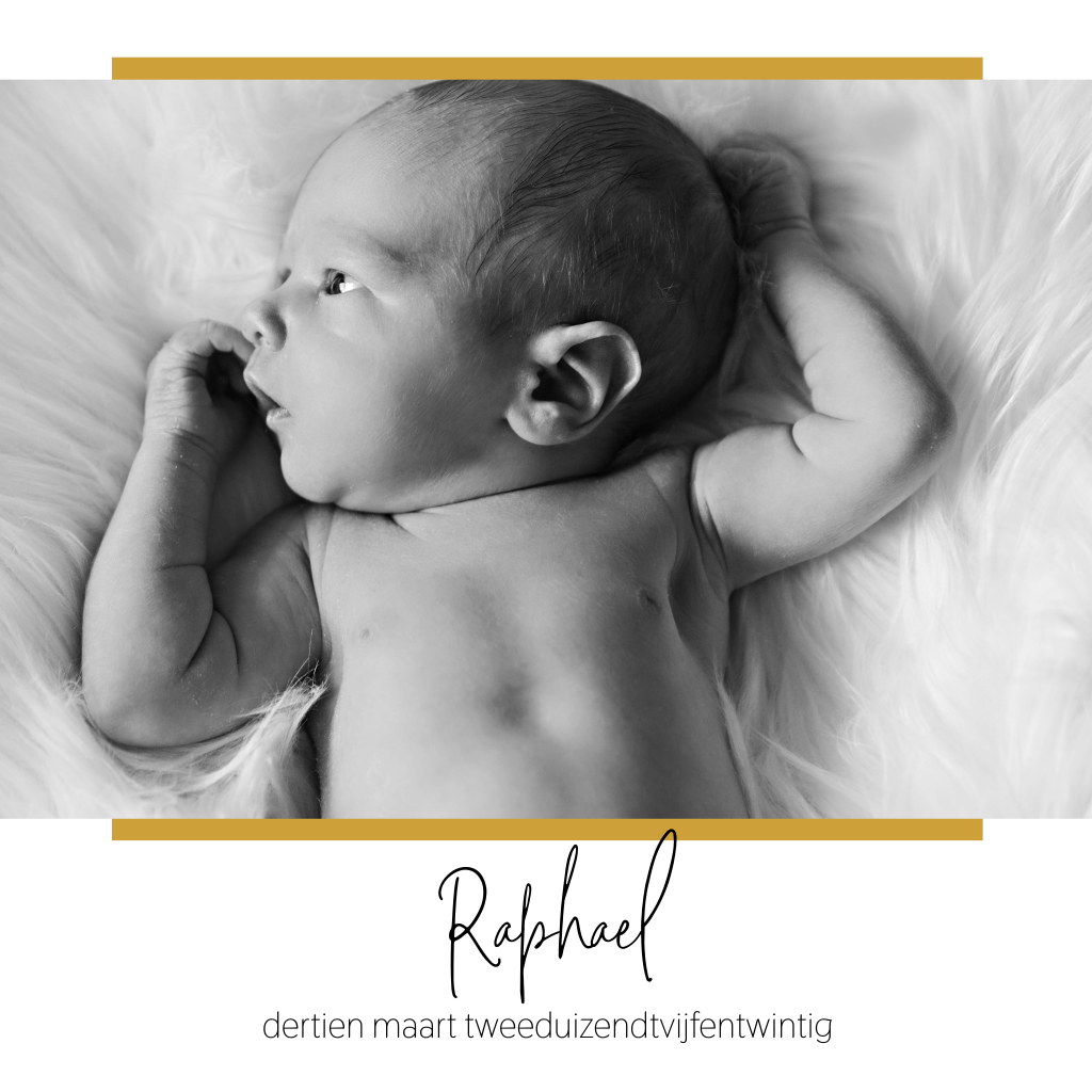 Minimalistisch geboortekaartje voor een jongen met foto en lijnen