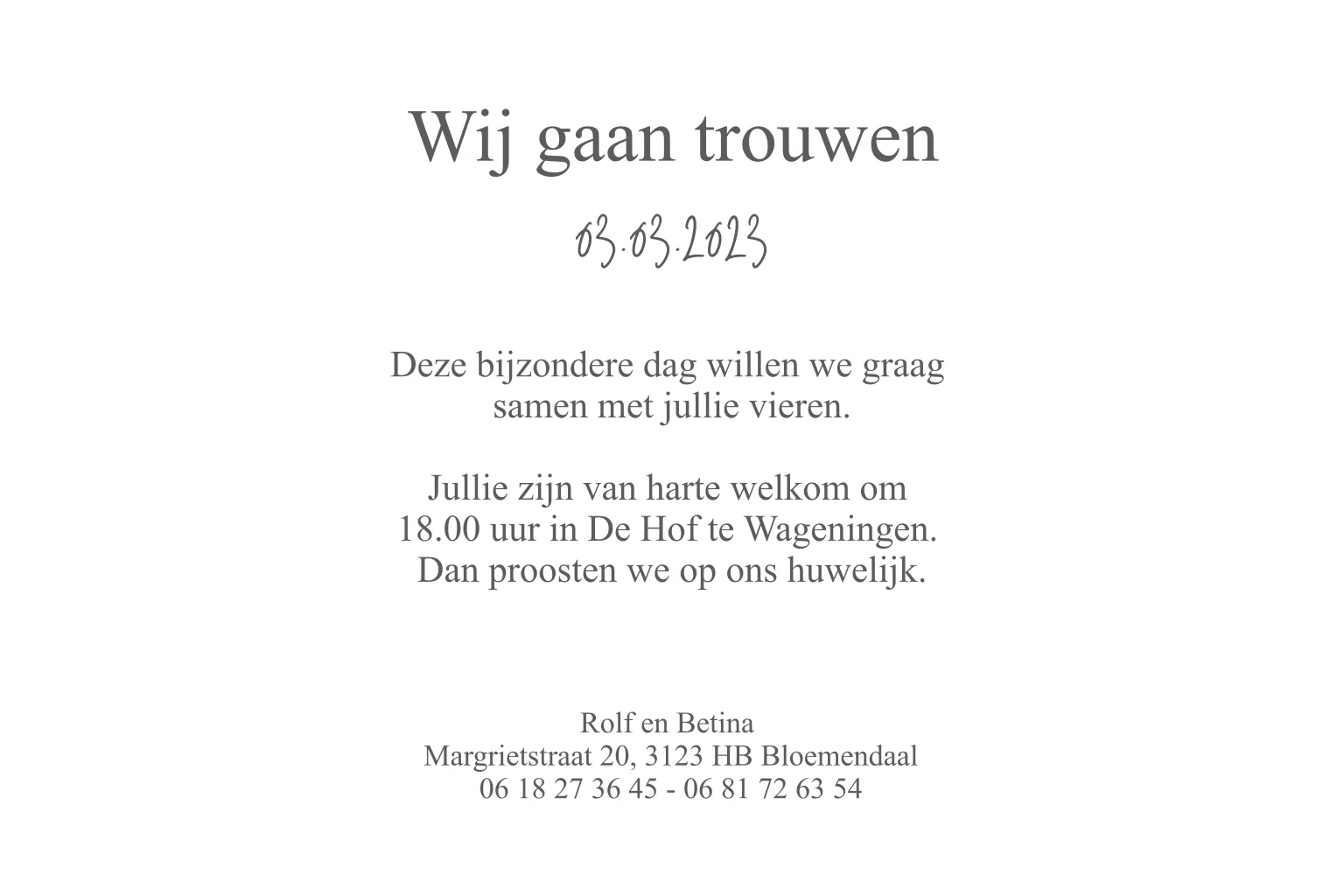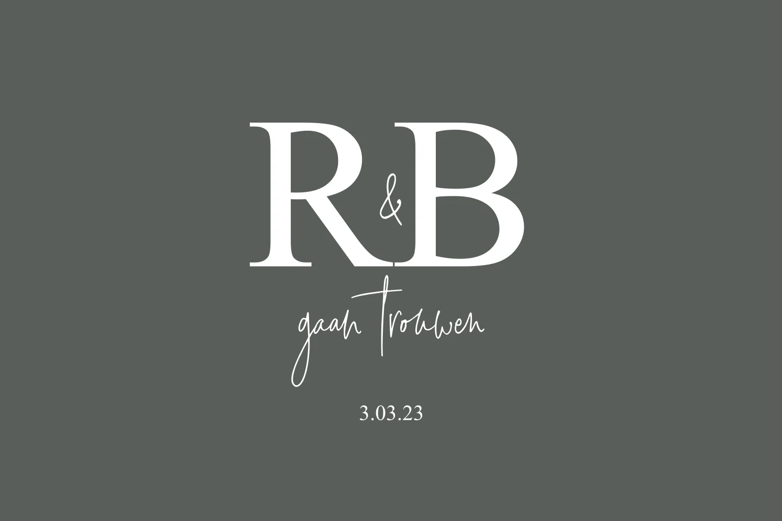 Minimalistisch trouwkaart met groot initiaal op de voorkant. (22281)