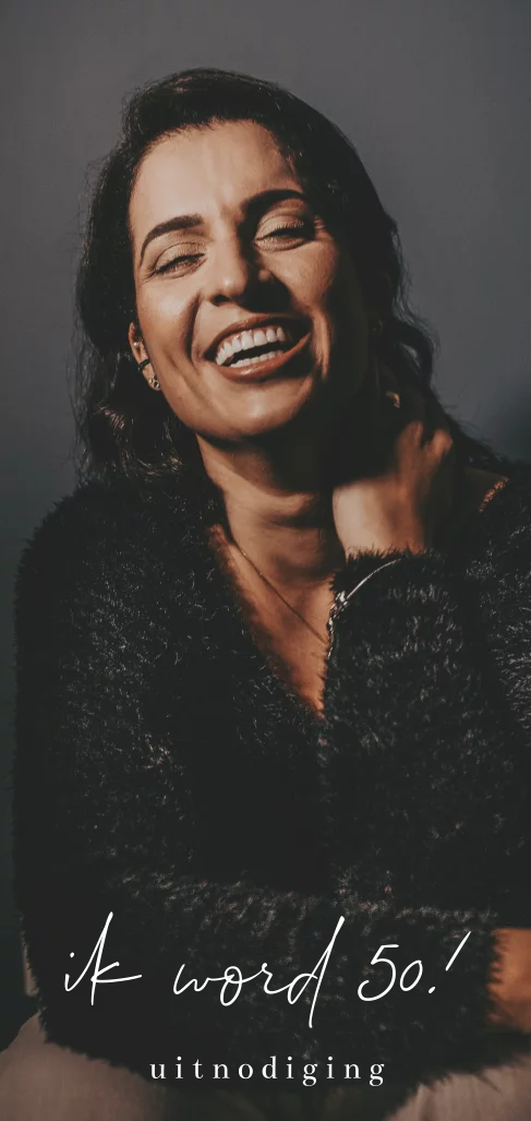 Luxe uitnodiging 50 jaar verjaardag vrouw met foto en goudfolie tekst. (24053)
