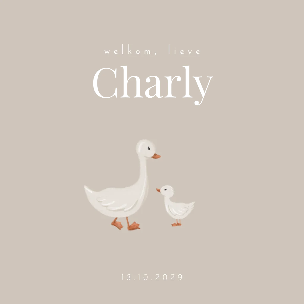 Geboortekaartje voor een jongen of meisje met 2 eendjes op een warme beige kleurige achtergrond. (24344)