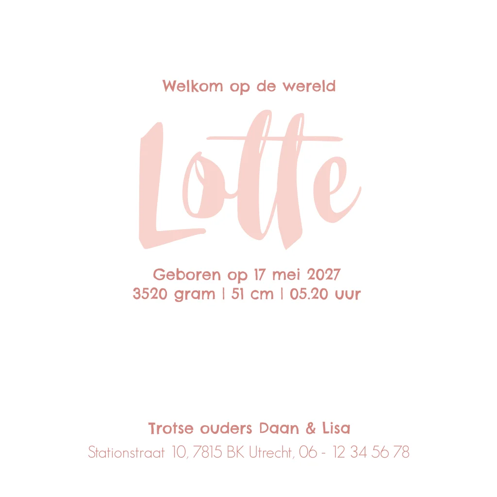 Leuk geboortekaartje meisje met vos