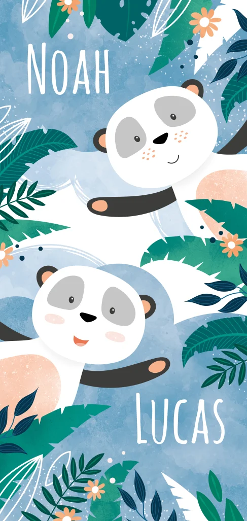 Tweeling geboortekaartje jungle pandabeertjes