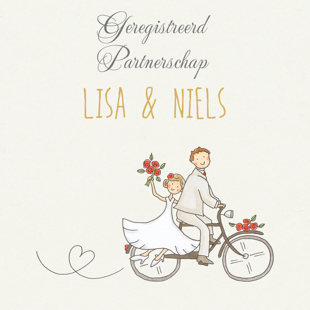 Geregistreerd partnerschap uitnodiging bruidspaar op fiets vierkant