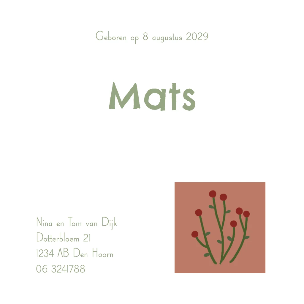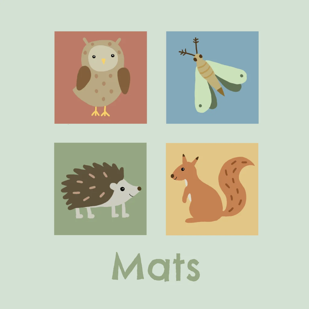 Vrolijk geboortekaartje voor een jongen met dieren uit het bos op gekleurde vlakken. Je kan dit geboortekaartje zelf naar wens aanpassen (24728)