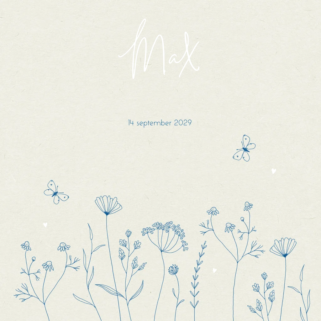 Geboortekaartje jongen bloemen vlinders delftsblauw