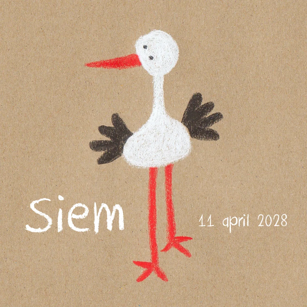 Een origineel getekend geboortekaartje met een ooievaar voor een jongen. Aan de binnenzijde van dit geboortekaartje staan slingers in blauw en groen. (4475)