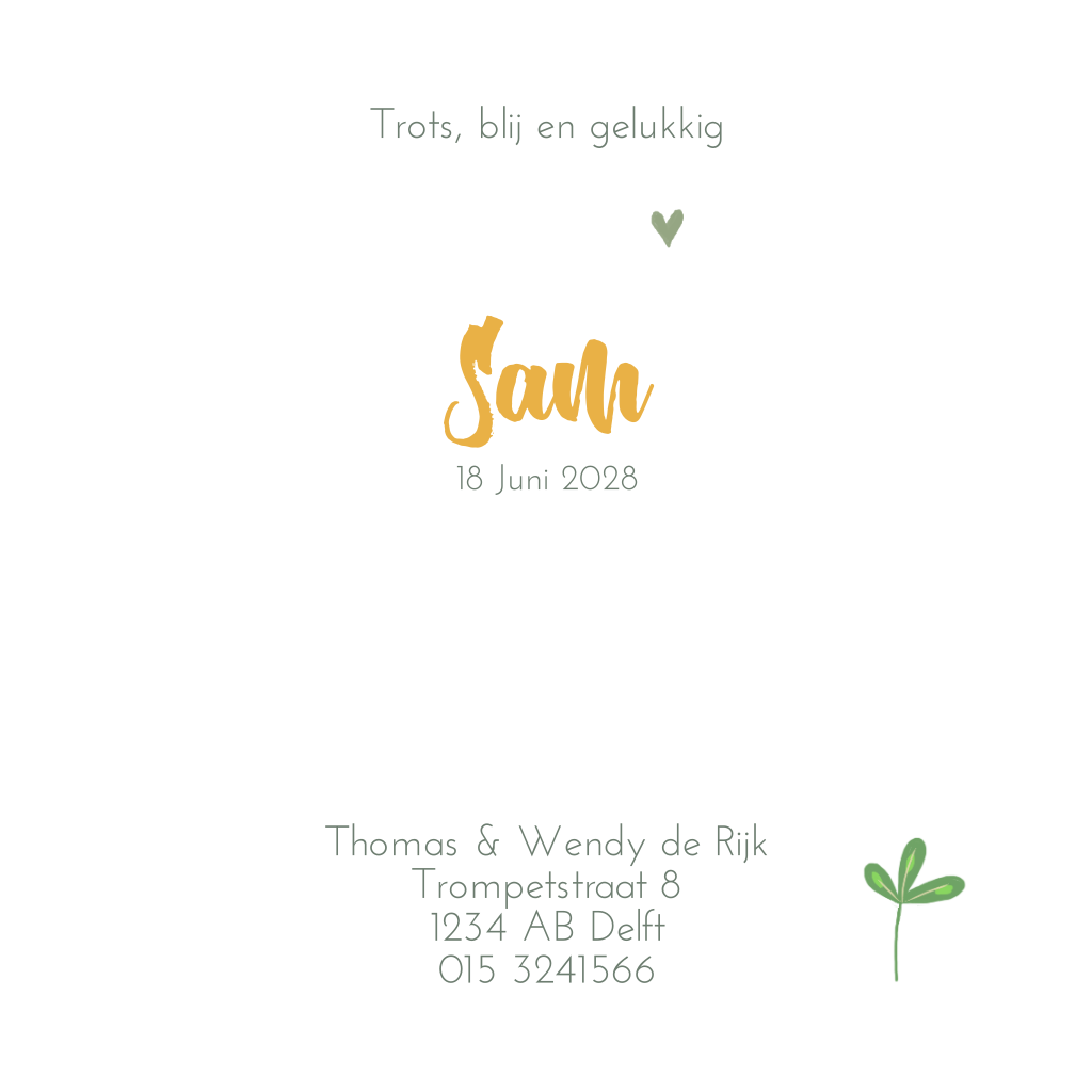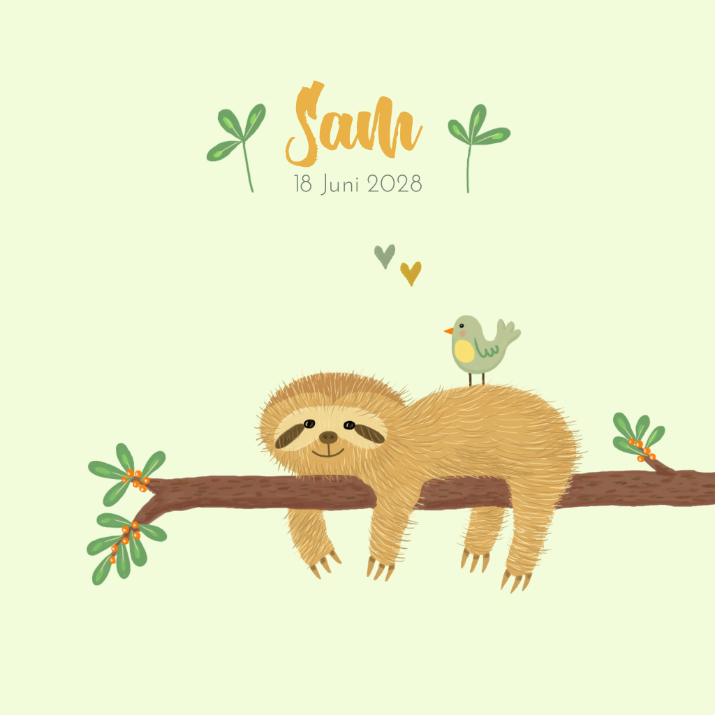 Geboortekaartje luiaard jongen