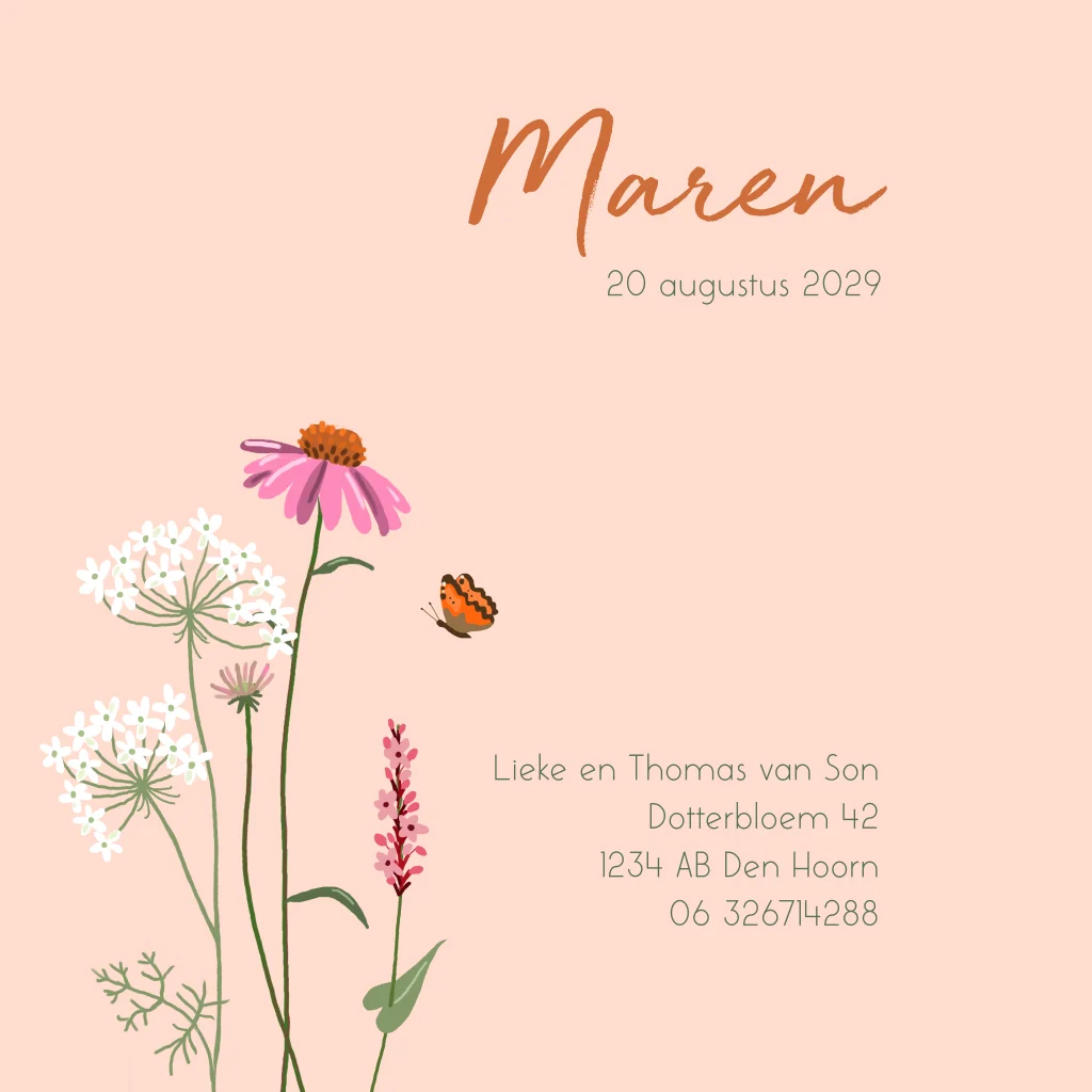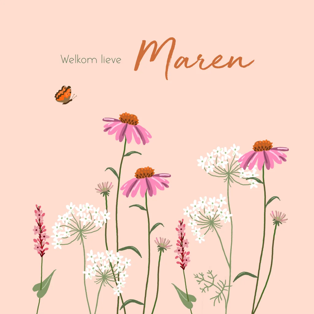 Geboortekaartje meisje bloemen en vlinder