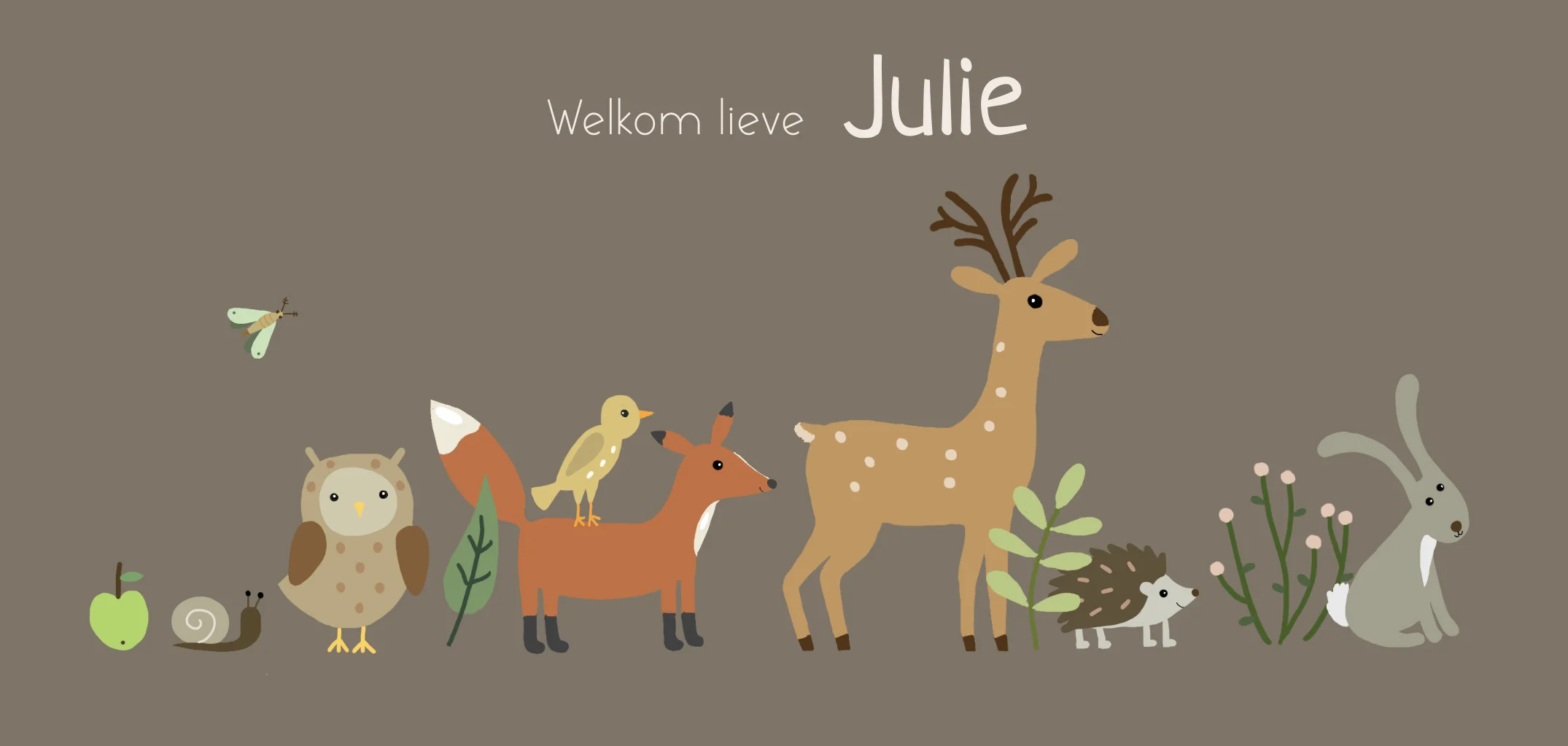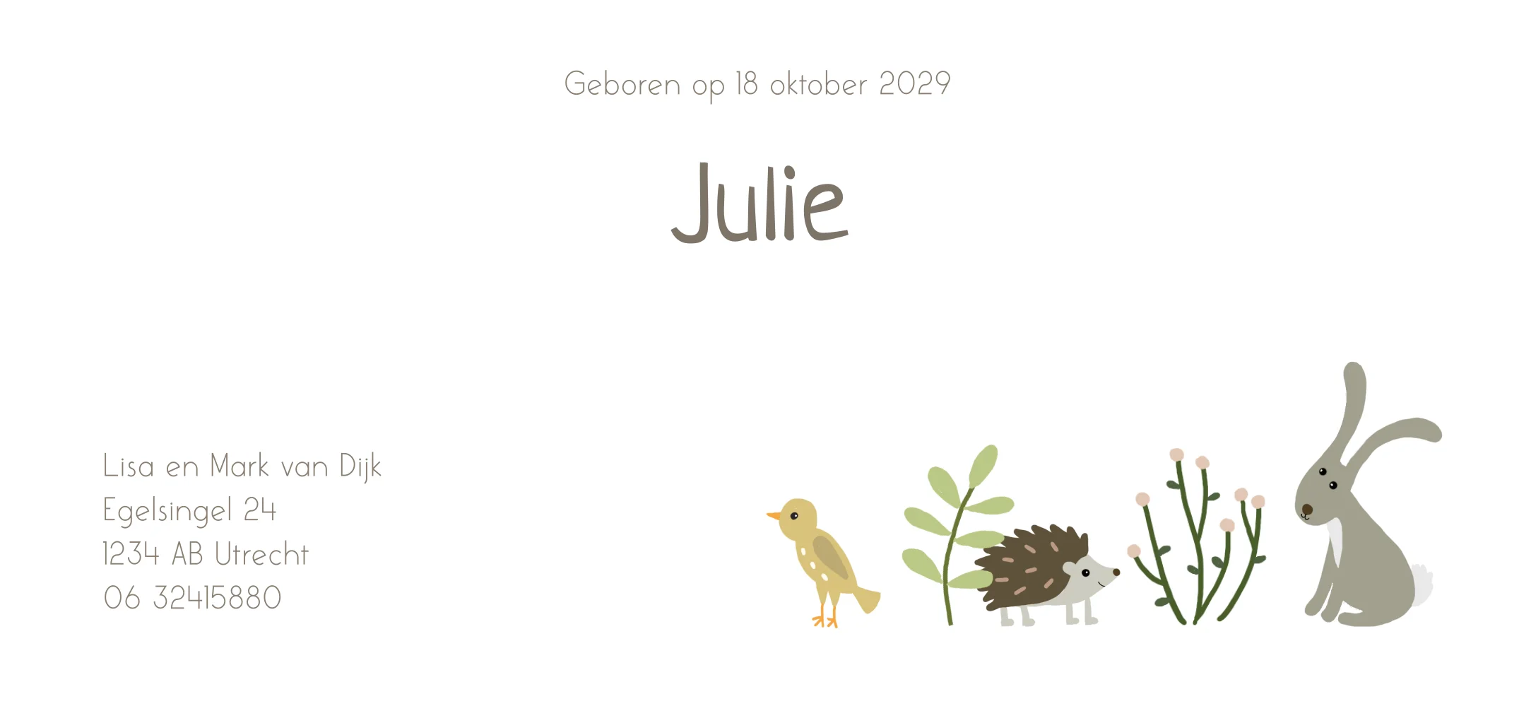 Geboortekaartje meisje herfst bosdieren bruin