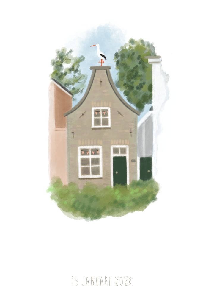 Geboortekaartje meisje huis slingers ooievaar