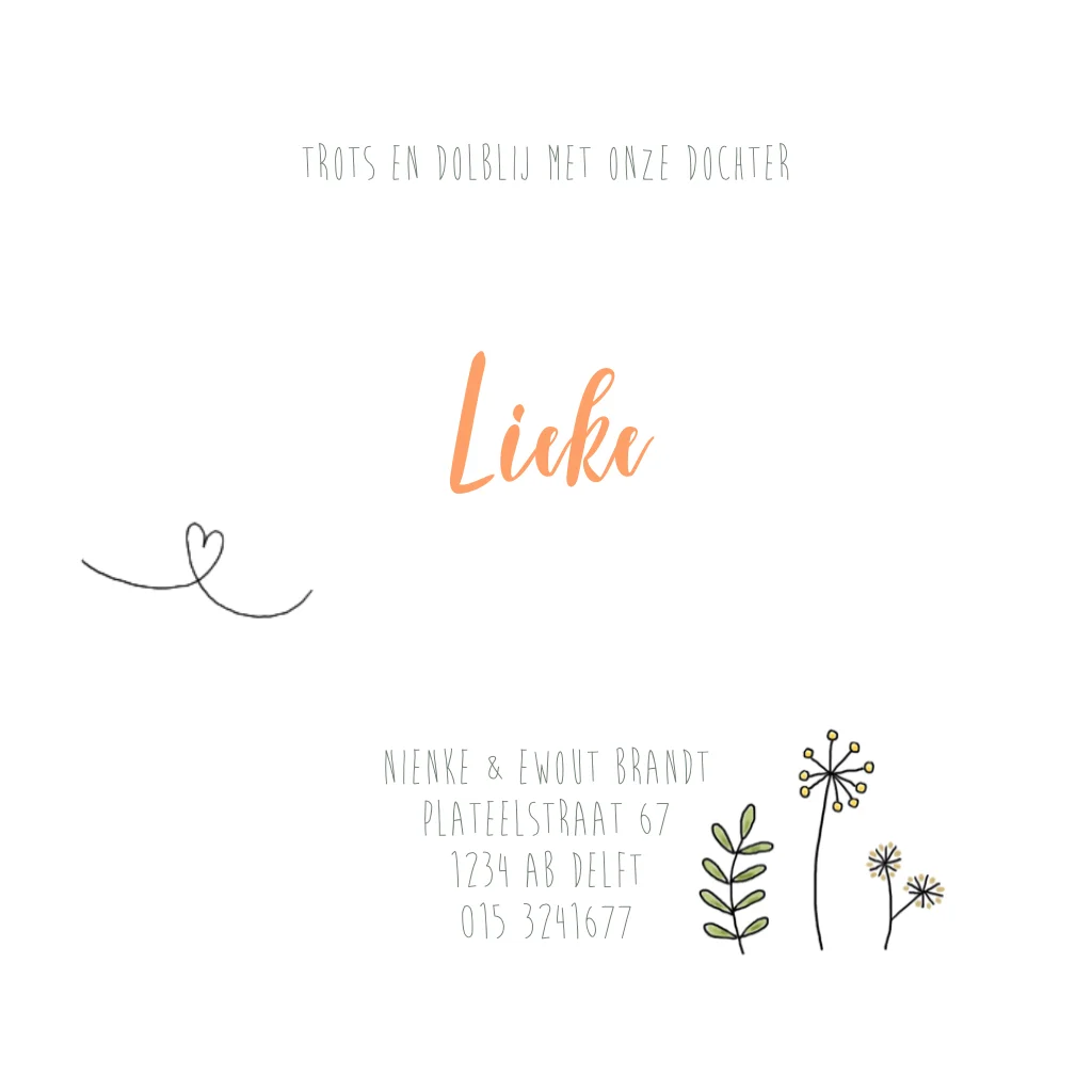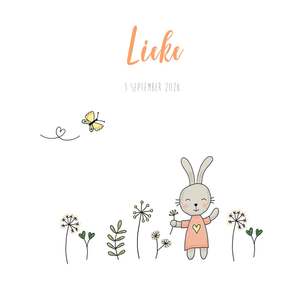 Geboortekaartje meisje konijn, vlinder en plantjes