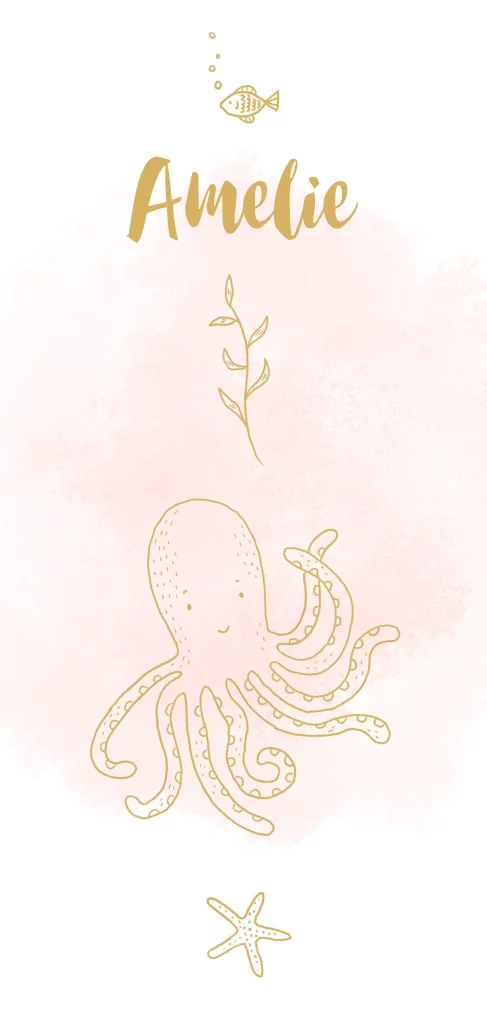Geboortekaartje meisje zeedieren octopus