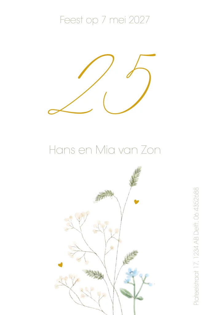 Jubileum kaart 25 jarig huwelijk bloemen paars en wit