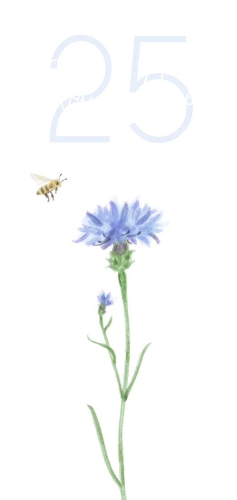Jubileumkaart met korenbloem en bij. De namen zijn gedrukt in goudfolie. (23199)