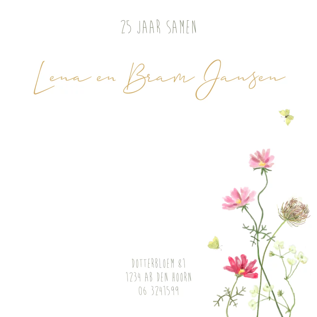 Jubileumkaart 25 jaar samen bloemen en vlinders
