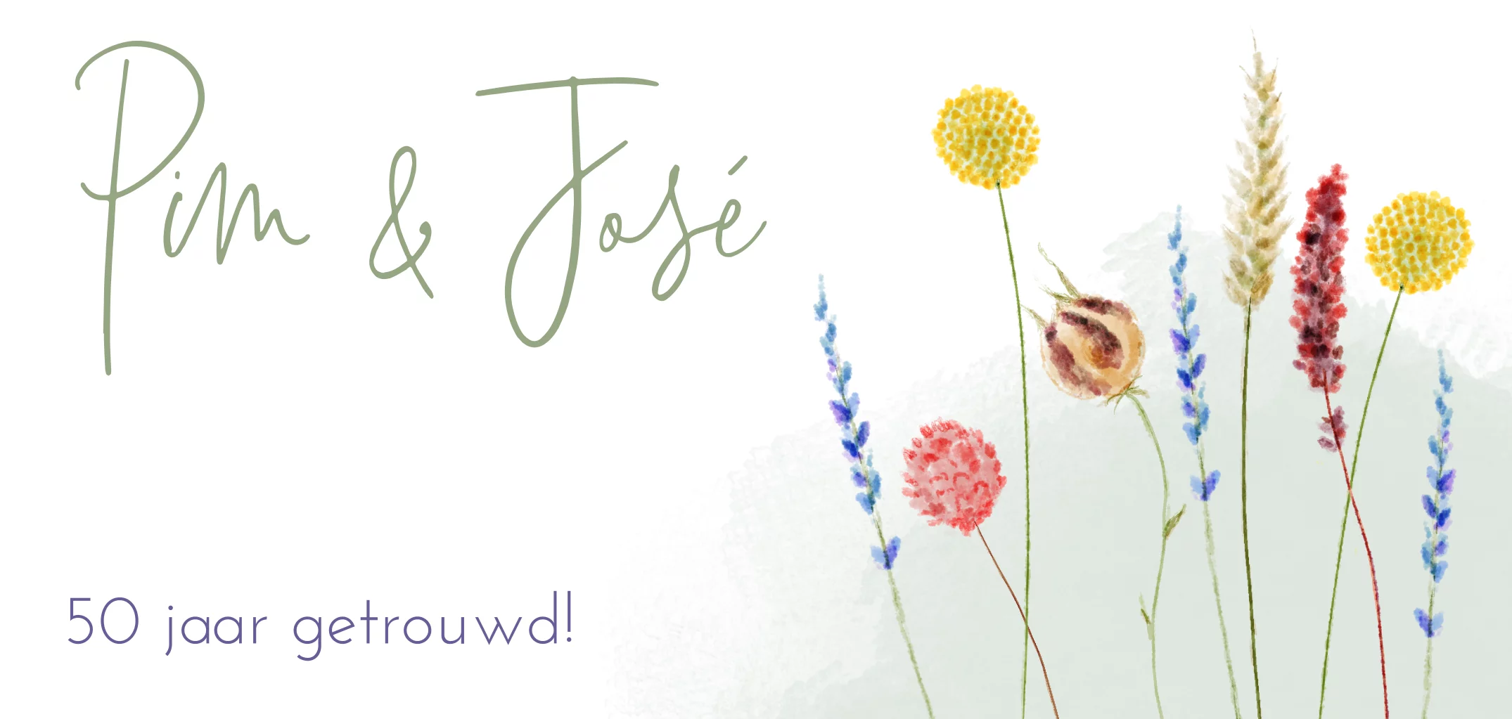 Jubileumkaart 50 jaar getrouwd droogbloemen