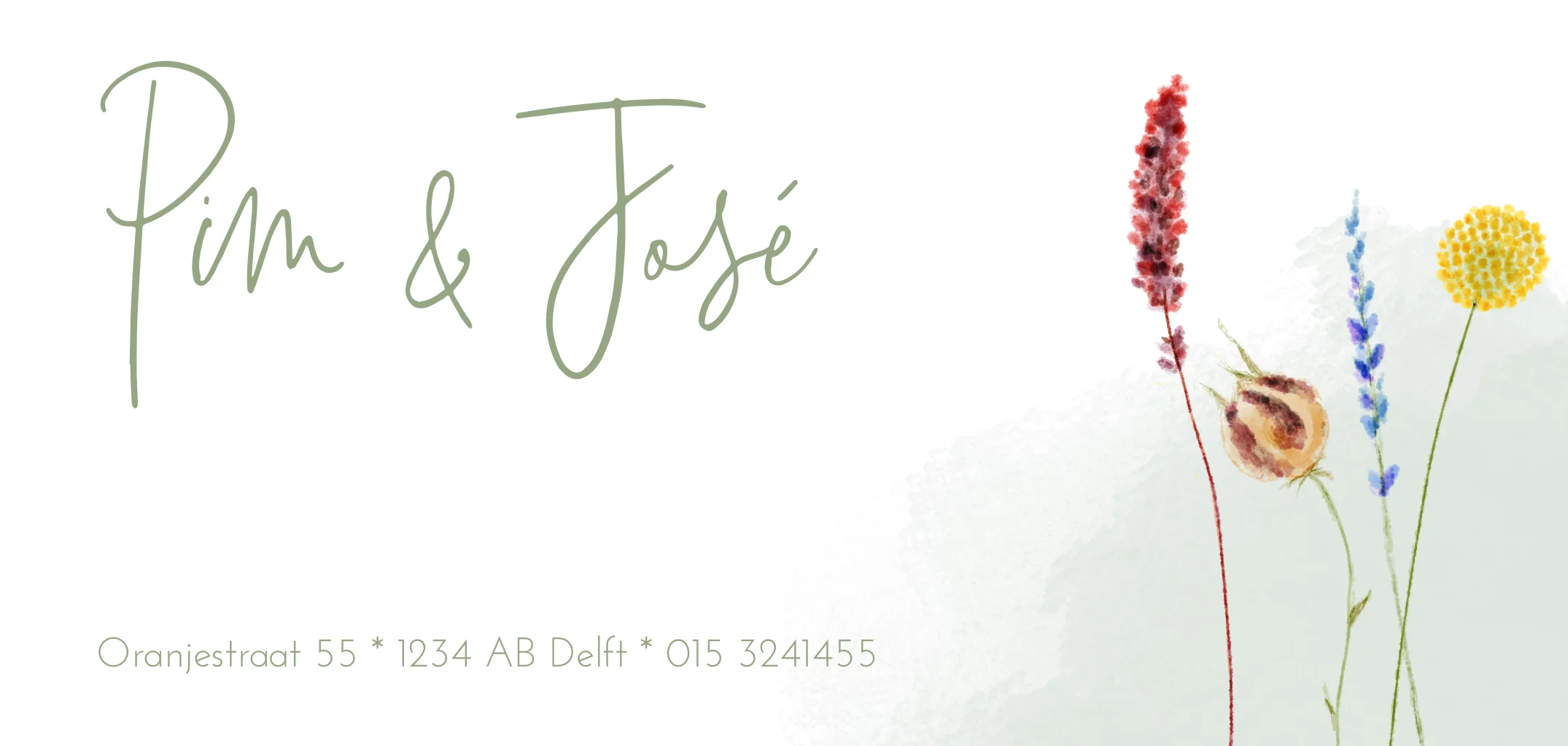 Uitnodiging 50 jaar getrouwd met mooi geschilderde droogbloemen in aquarel. (21330)