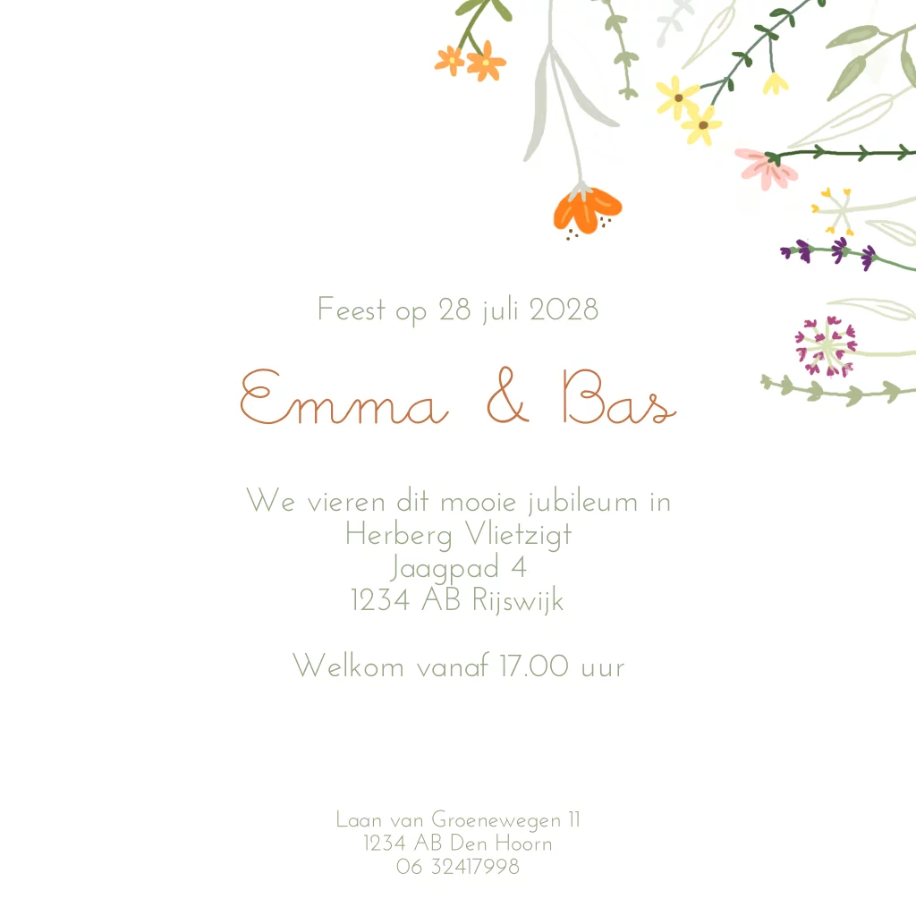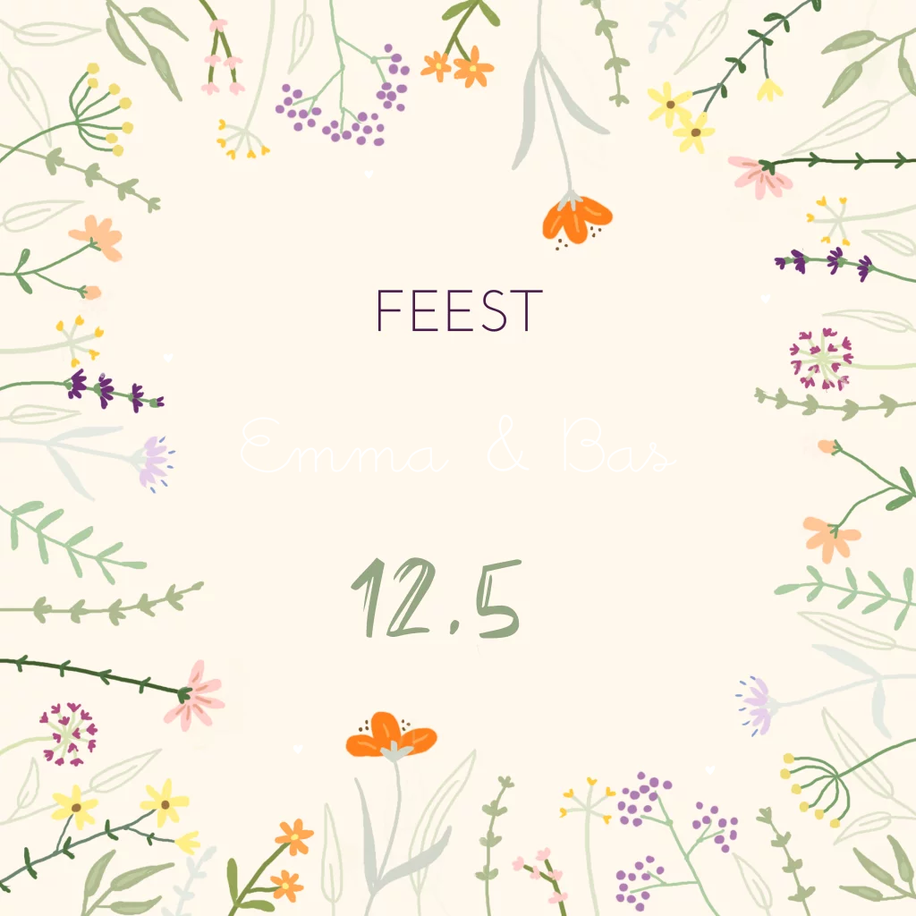 Jubileumkaart bloemen krans 12,5 jaar getrouwd
