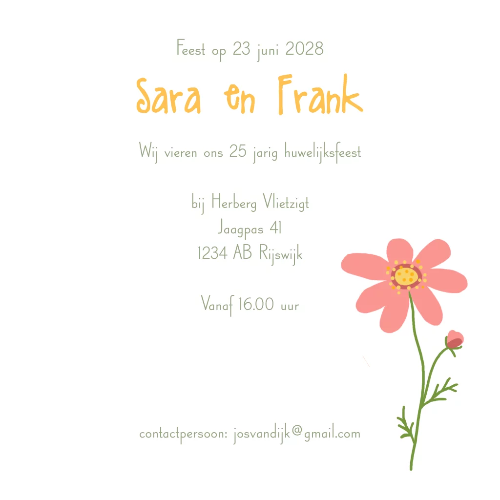 Jubileumuitnodiging 25 jaar getrouwd verdbloemen modern