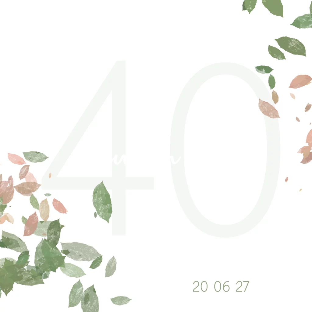 Jubileumkaart uitnodiging 40 jaar met bladeren in roze en groen