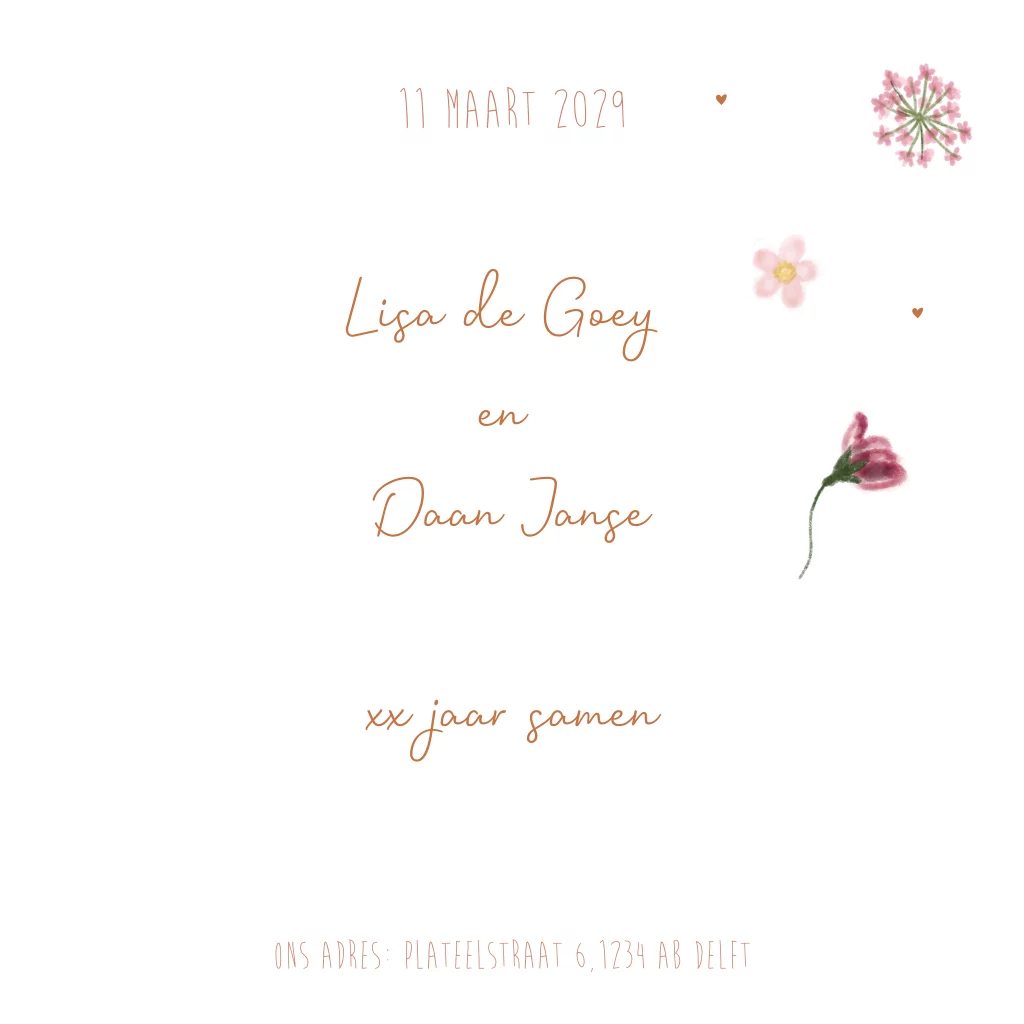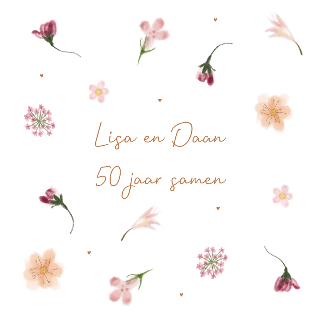 Uitnodiging 50 jaar getrouwd met getekende bloemetjes