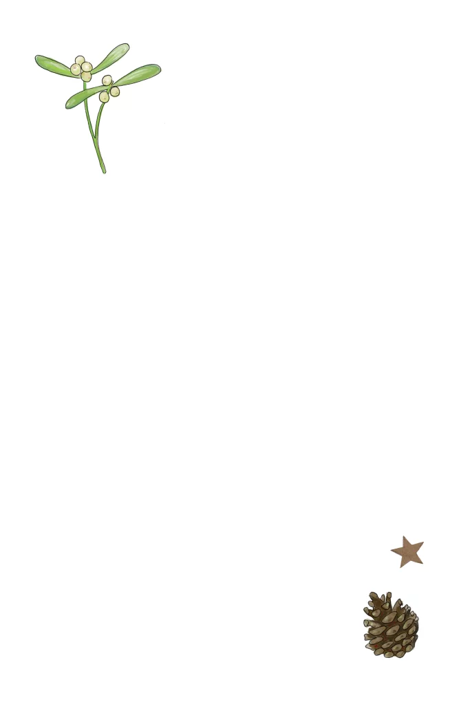 Kerstkaart met kleine illustraties en kerstwens op hout