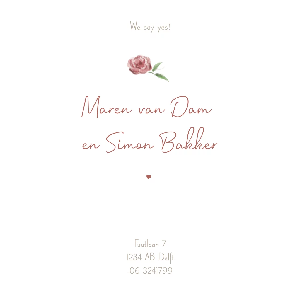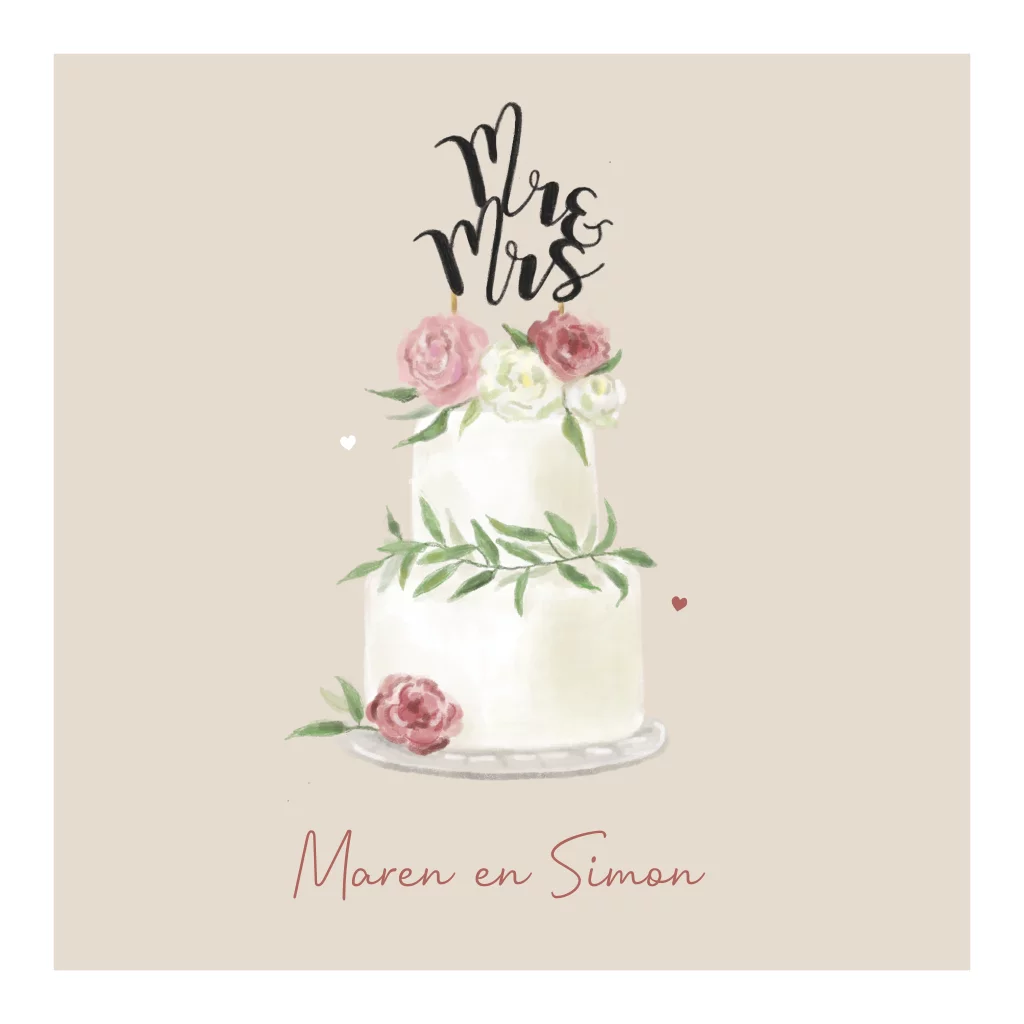 Trouwkaart met bruidstaart met rozen