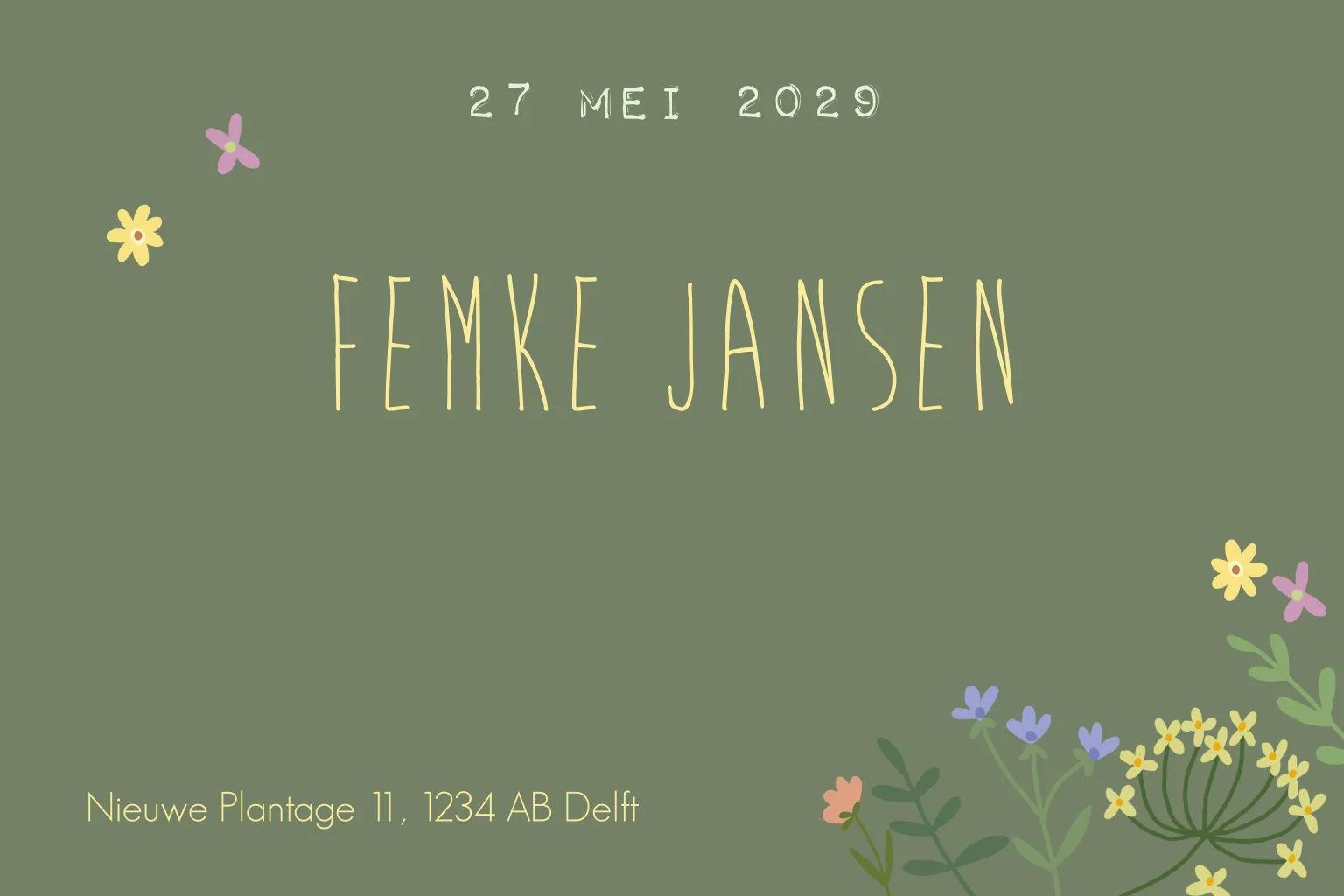 Uitnodiging 50 jaar verjaardag vrouw met bloemen op groene achtergrond