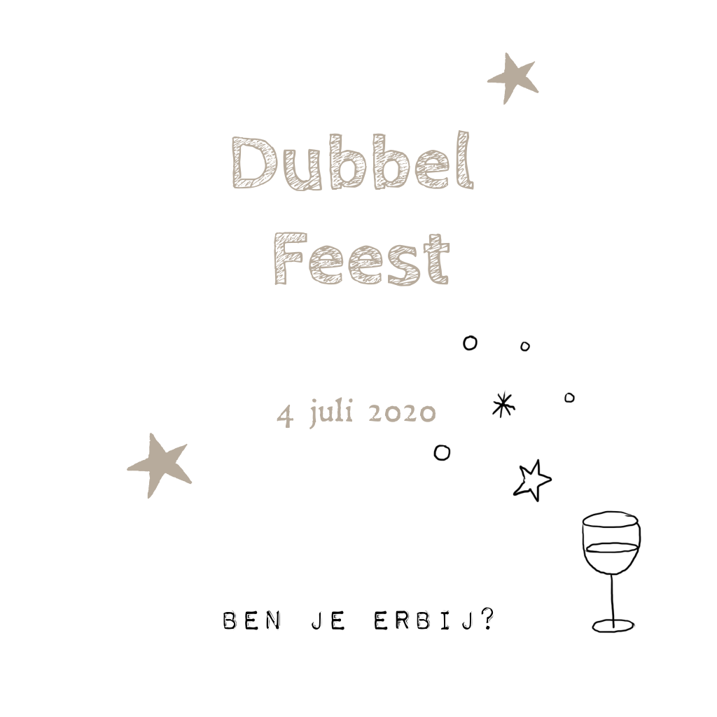 Een moderne uitnodiging voor een dubbel feest met getekende drankjes en sterren op kraft. (6652)