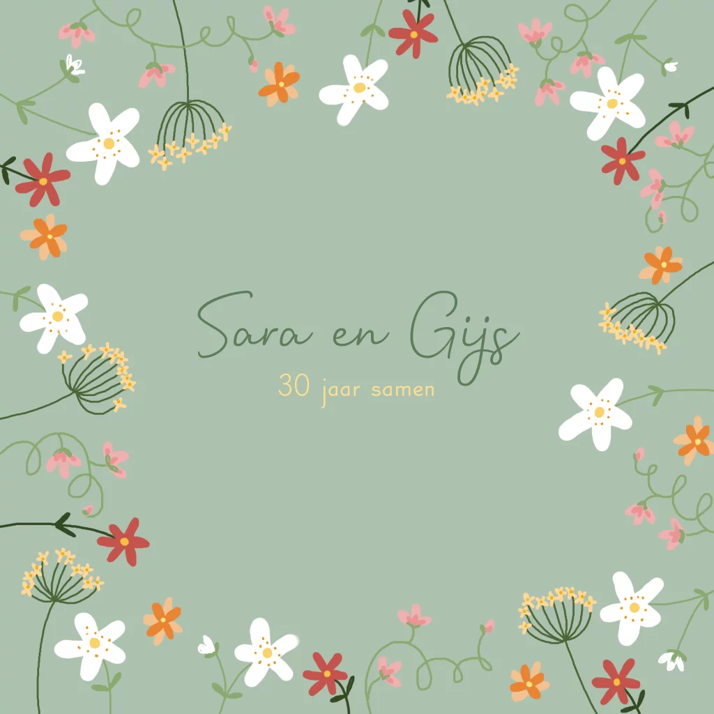 Uitnodiging jubileum 30 jaar bloemen geel rood roze oranje