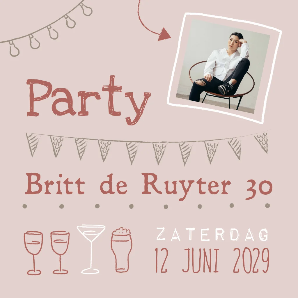 Een hippe 30 jaar verjaardagsuitnodiging met handlettering voor een dertig jarige en ruimte voor een eigen foto. (24124)