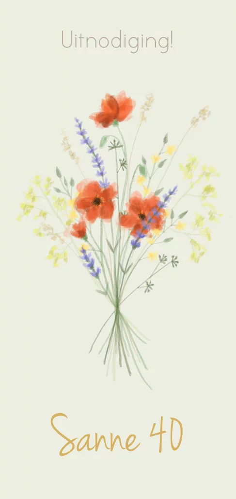 Verjaardagsuitnodiging 40 jaar veldboeket papaver