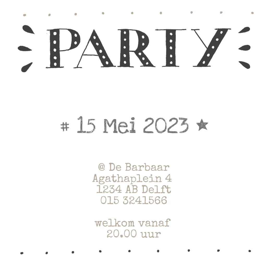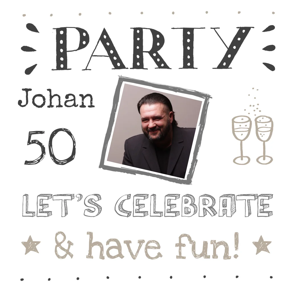 Een hippe 50 jaar verjaardagsuitnodiging met handlettering en ruimte voor een eigen foto. (20756)