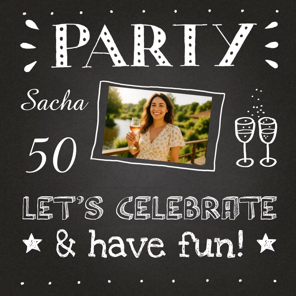 Verjaardag uitnodiging krijtbord foto 50 jaar Sarah