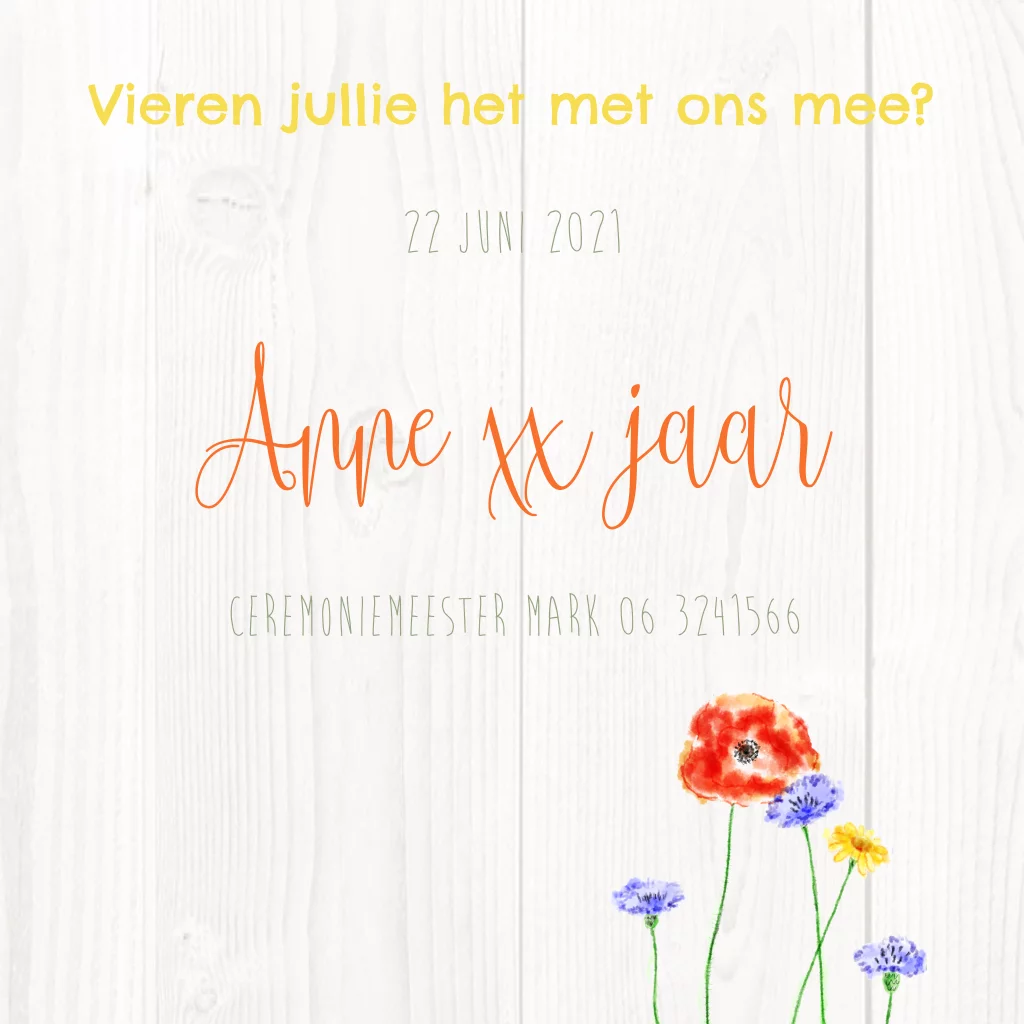 Uitnodiging verjaardag vrouw veldbloemen 65 jaar