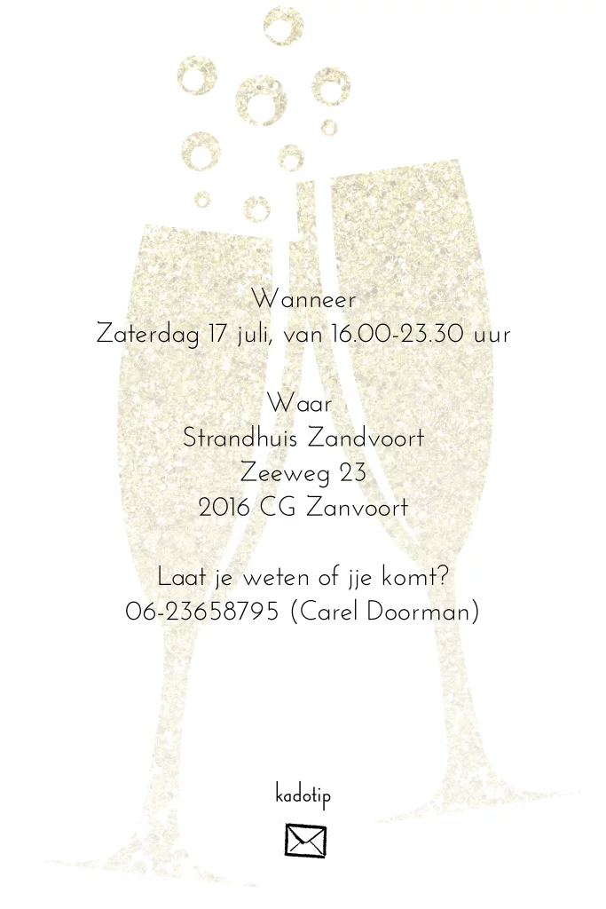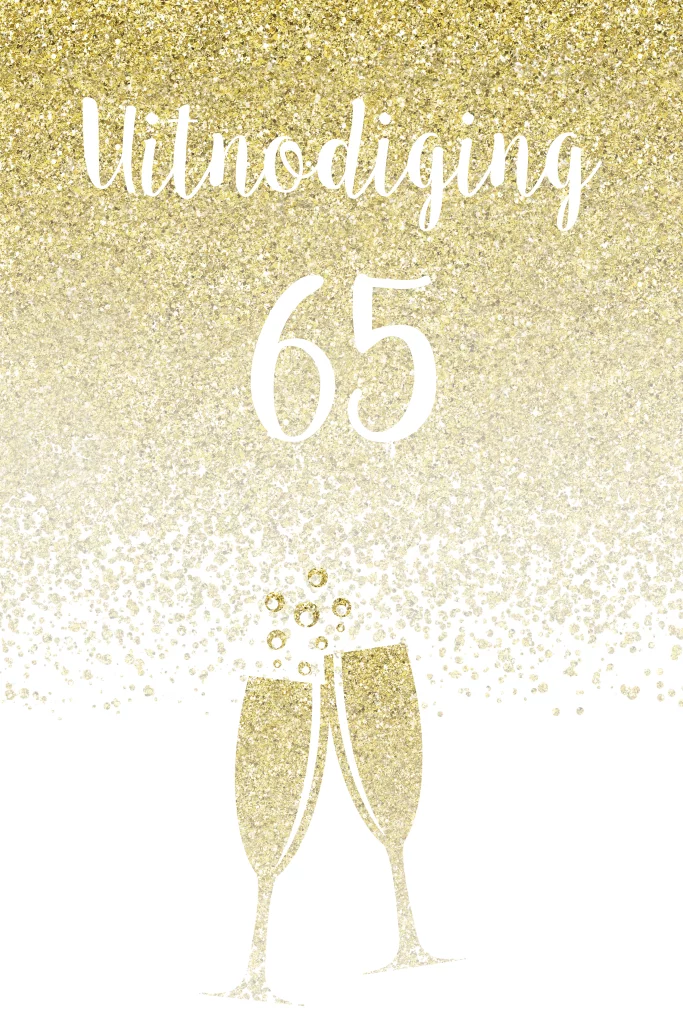 Uitnodiging verjaardag 65 jaar met champagne glazen. (7202)