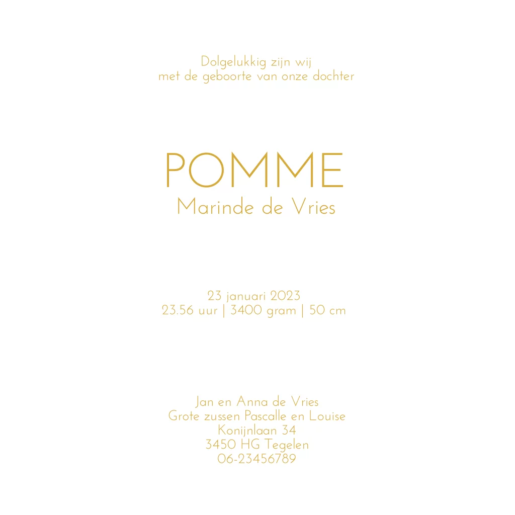 Geboortekaartje 4de kindje meisje met twee zussen