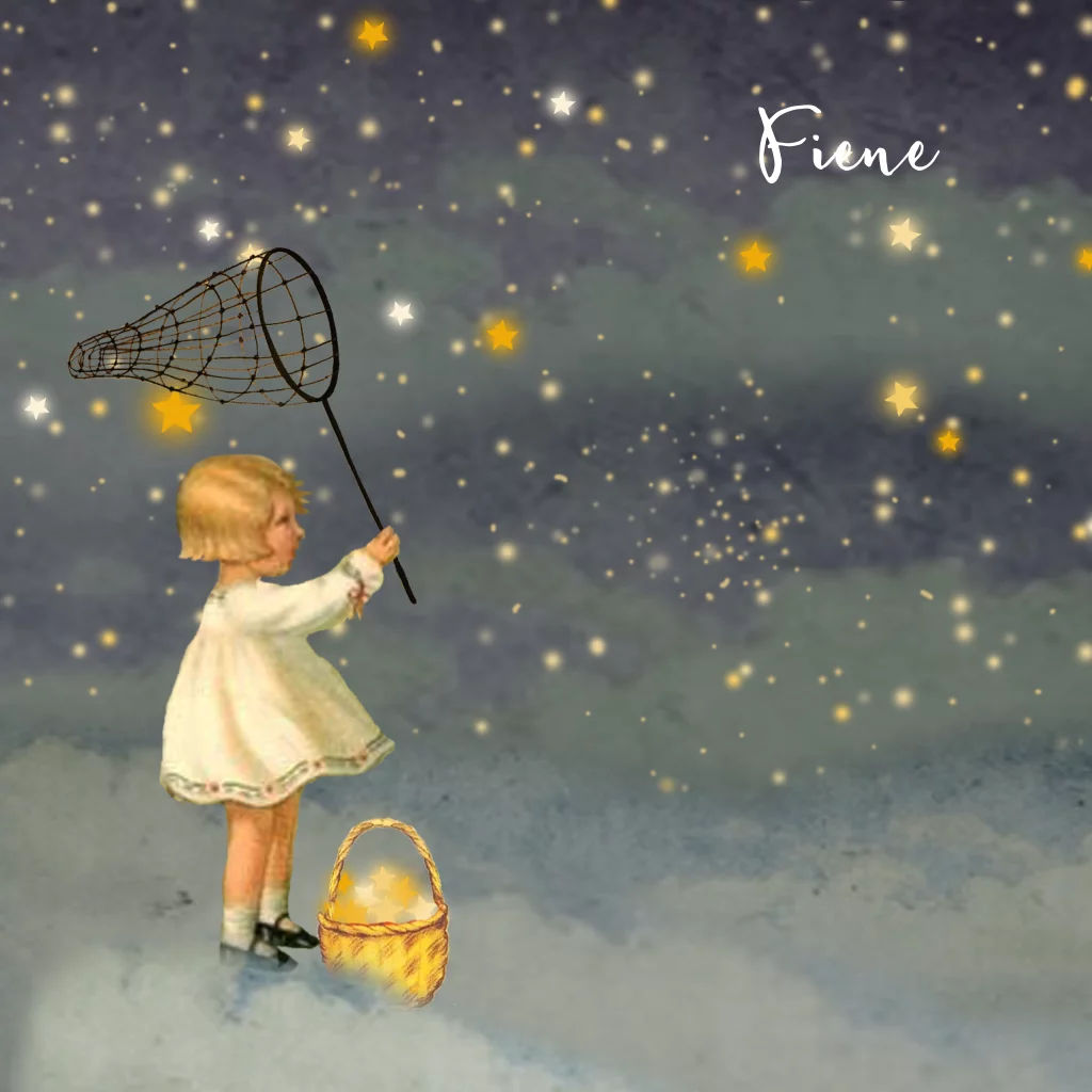 Geboortekaartje nostalgisch met sterretjes. Ze worden gevangen met het netje en kijk eens hoeveel zij er al heeft gevangen! (6774) Ook wel sprookjes genoemd.
