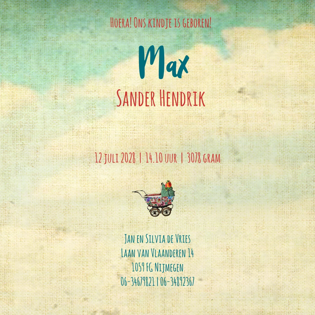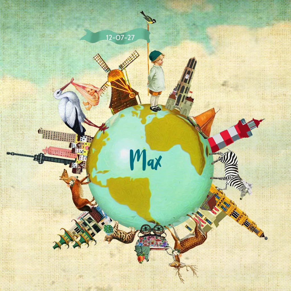Geboortekaartje voor kindjes uit de stad utrecht, amsterdam of rotterdam. Maar de vuurtoren, de molen en allerlei leuke dieren staan er op. (7221)