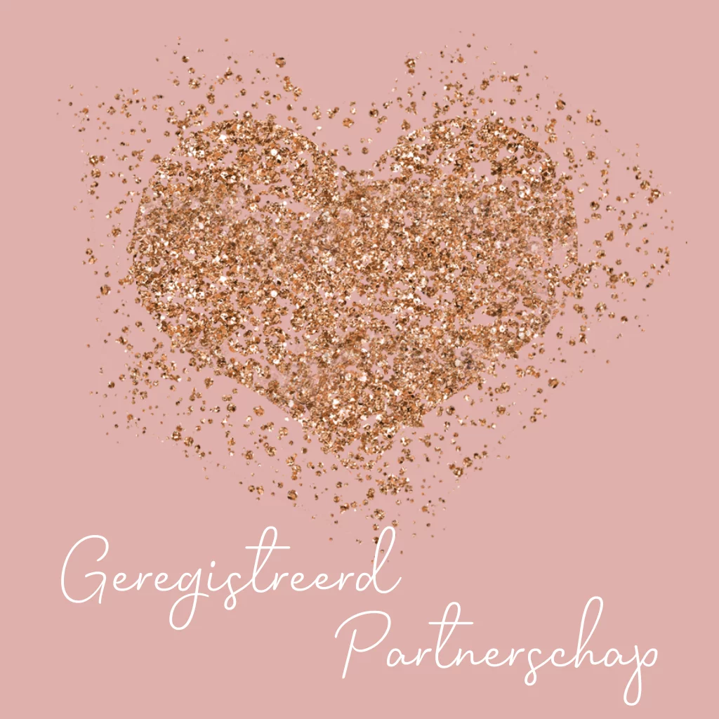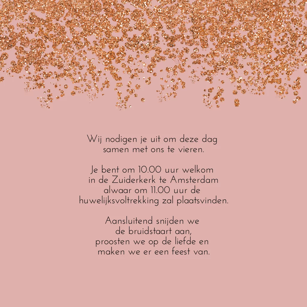 Geregistreerd partnerschap uitnodiging met koper glitters met een oudroze achtergrond. Stijlvol, chic, feestelijk, ingetogen. (7128)