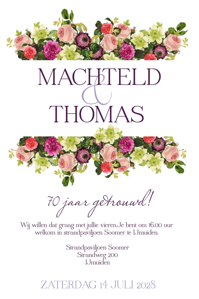 Jubileumkaart 70 jaar getrouwd botanisch