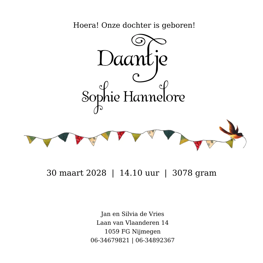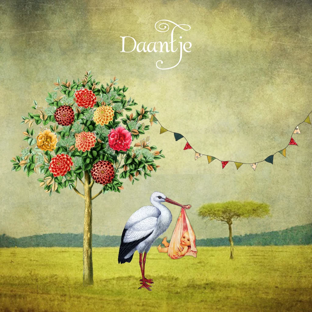 Nostalgisch geboortekaartje met ooievaar voor een meisje