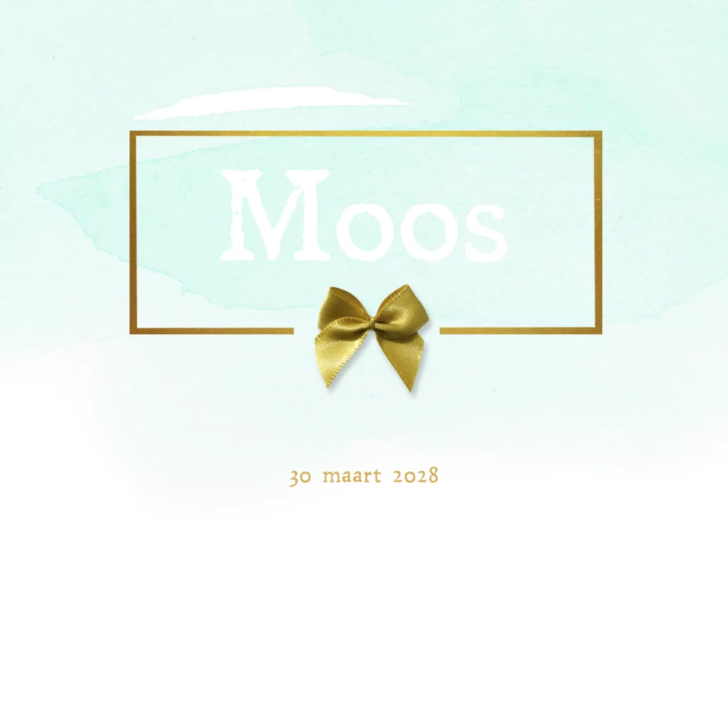 Prachtig waterverf geboortekaartje jongen mèt echt strikje! Heel mooi met een witte, lichtblauwe of gouden envelop.